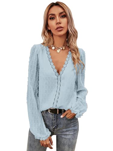 Yatrendy Camicetta Manica Lunga Donna Tinta Unita Allentata Casual Autunno Inverno Moda Scollo a V t-Shirt in Pizzo Chiffon Tops