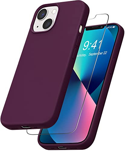 YATWIN Cover Compatibile con iPhone 13, Custodia iPhone 13 Silicone, Full Body Protettiva Case, Prugna