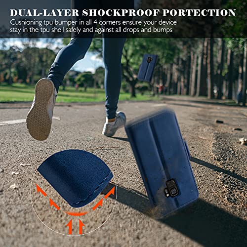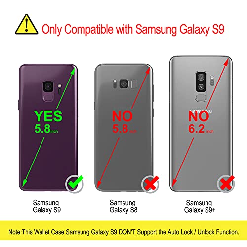 CUSTODIA A PORTAFOGLIO MULTIFUNZIONALE. La custodia Samsung Galaxy S9 è composta da 2 slot per carte e 1 tasca per banconote, per conservare carte o contanti o foto di famiglia. La custodia può contenere comodamente 2 carte di credito e 5 banconote e 1 foto di famiglia. Abbiamo fatto in modo che tutti i ritagli siano accurati e posizionati perfettamente in modo da poter utilizzare qualsiasi cavo senza rimuovere la custodia.