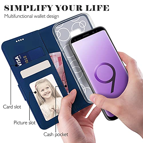 YATWIN Cover Samsung Galaxy S9, Flip Custodia Portafoglio in Pelle Premium Slot, Interno TPU Antiurto, Supporto Stand, Stile Libro e Chiusura Magnetica Folio Caso per Samsung Galaxy S9 - Blu