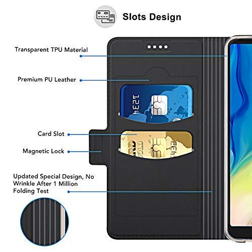 [Multifunzione]: La cover Huawei P30 Lite custodia a portafoglio con 2 porta carte e 1 tasca per soldi per conservare tutte le carte di credito e il denaro necessario per la massima comodità. Proteggi il tuo telefono mentre ti serve ancora come portafoglio.