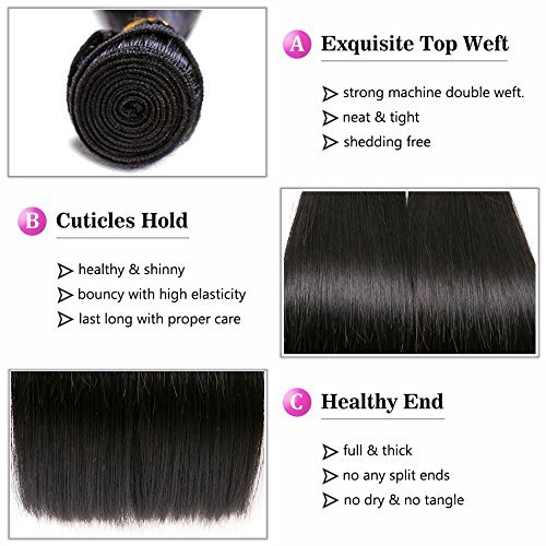 Yavida Extension con capelli veri peruviani lisci, 4 ciocche, 7A, colore naturale, testa intera, 400 g