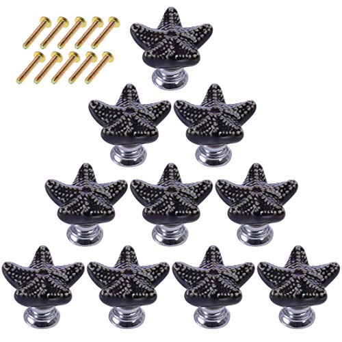 Yavso Pomelli Ceramica, 10 pezzi Stella Marina Pomelli Mobili Bambini Manopola Pomello Mobile per Cassetto Armadi Armadio (Nero)