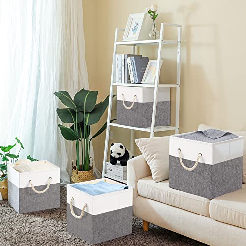 Yawinhe Grande Scatola di Immagazzinaggio Pieghevole Cassetta di Archiviazione Piegatura Utilizzato per conservare Giocattoli, Libri, Vestiti 33x33x33cm (Grigio/Bianco, 3-Pack)