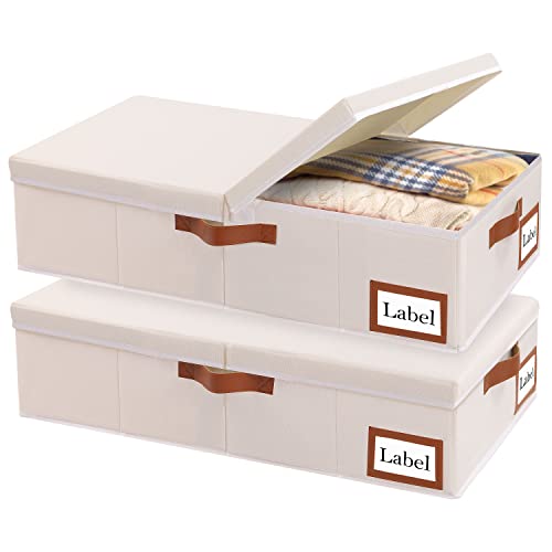 Yawinhe 2 Pezzi Contenitore Sottoletto,Sacchi Portaoggetti Pieghevole Sotto il Letto con coperchio e Maniglie,Utilizzato per Riporre Vestiti, Trapunte,Coperte,60x30x15cm,Beige