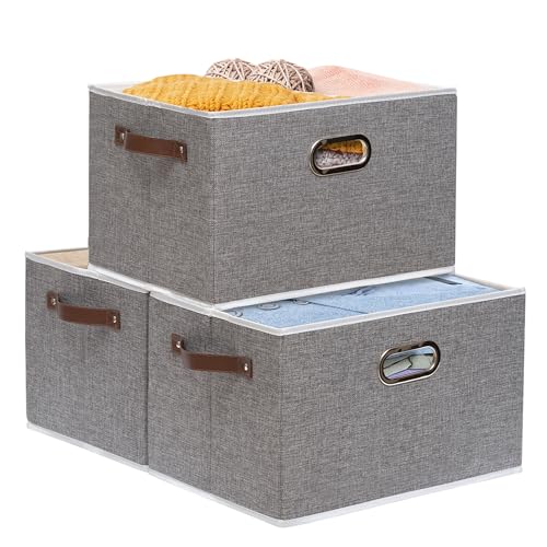 Yawinhe Set di 3 Scatole Portaoggetti Pieghevoli, Cestini Portaoggetti in Tessuto, Contenitori, per Conservare Vestiti, 38x25x21cm, Grigio, SNK030GS