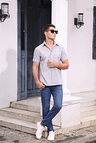YawYews Camicie estive da uomo in lino a maniche corte, in cotone, casual, con bottoni, taglia M, 3XL, Grigio, XXL