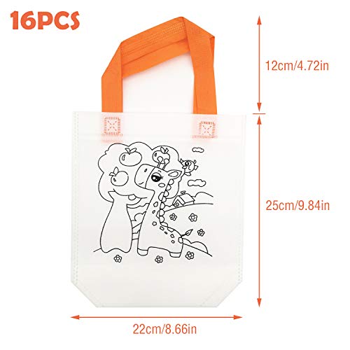 YAXIDAEVER 14Pcs Borsa da Festa per Bambini,Borsa Graffiti Fai da Te,Busta in Tessuto Non Tessuto Con 12 pennarelli colorati per regali di compleanno, scuole e feste