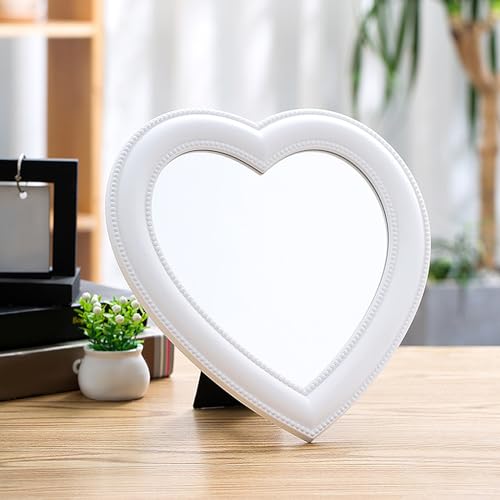 YAXIDAEVER specchio a forma di cuore, Specchio da Tavolo a Forma di Cuore, Specchio da trucco a forma di cuore da viaggio, Bianco, per camera da letto, soggiorno, bagno