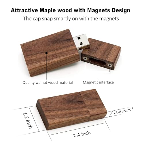 Yaxiny, chiavetta e memoria USB 2.0 e 3.0 in legno di noce, confezione da 5 Wood USB Disk-4 2.0/64GB