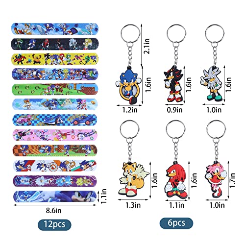 YAXMME Sonic Compleanno Decorazioni,68 Pezzi Sonic Decorazioni per Feste,Bracciali a Scatto,Portachiavi,Adesivi,Bomboniera per Feste di Compleanno a Tema per Bambini
