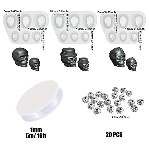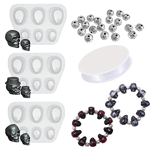 Yayatty Beads Set di Stampi in Resina, 3 Pezzi Stampi in Resina Teschio Stampi in Resina Epossidica con Corda, Accessori per Braccialetti, Fusione di Gioielli in Pietre Preziose