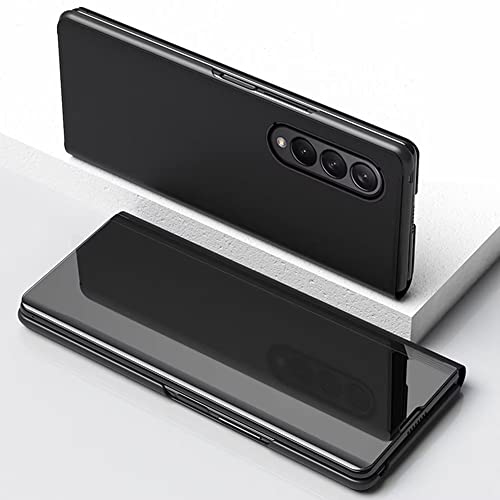 YayiTop Cover per Samsung Galaxy Z Fold 4, Custodia Flip con Specchio Placcato, con Custodia Cavalletto, Cover per Samsung Galaxy Z Fold 4.Nero