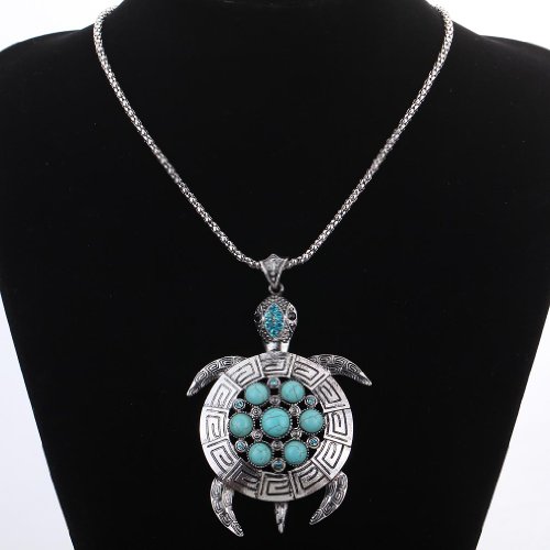 Yazilind, set di collana, orecchini e ciondolo a forma di tartaruga, in placcatura d'argento e cristalli blu, colore turchese