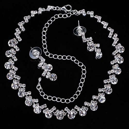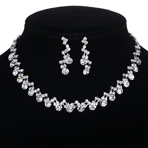 Yazilind, parure da sposa con collana e orecchini placcati in argento e lucentissimi cristalli trasparenti