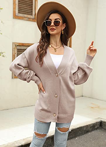 YBENLOVER Cardigan oversize da donna, a maniche lunghe, a pipistrello, a forma aperta, a treccia, beige., M