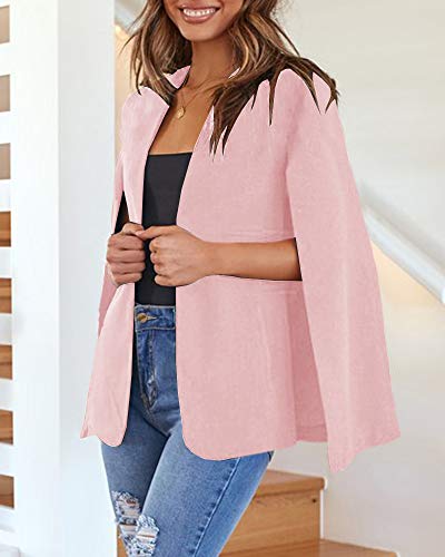 YBENLOVER Donna Cape Blazer Split Maniche Davanti Aperto Solido Giacca Workwear con Tasche, Colore: rosa., XXL