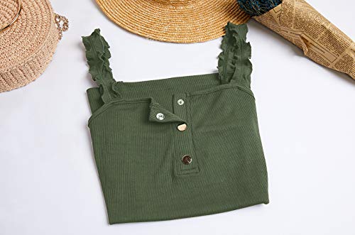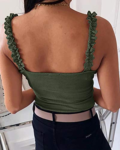YBENLOVER Top da donna, elegante, senza maniche, con scollo a V, per l'estate, verde militare, M