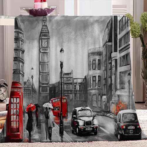 YBRAVO Coperta 130x150 cm Impressioni di Londra Coperta Flanella per Bambini e Ragazzi, Microfibra Morbido 3D Stampa Peluche Coperte Copriletti per Letto Divano