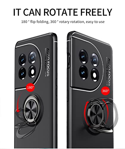 YBROY Custodia per OnePlus 11, custodia in silicone sottile antiurto in gomma flessibile, supporto ad anello rotante a 360 gradi, cover per OnePlus 11, (nero)