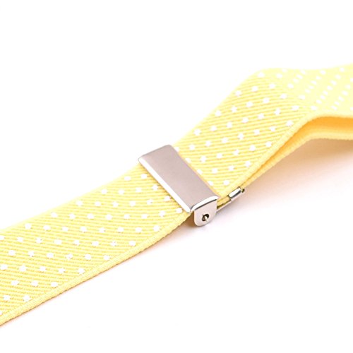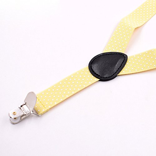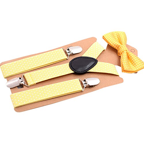 YCHENG Set Composto Bretelle + Papillon a Pois per Bambini Ragazzo Y Forma Elastiche e Regolabili con 3 Clip giallo 2.5 * 65cm
