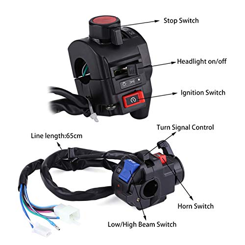 ★ Scelta perfetta - L'interruttore del manubrio sinistro possiede la funzione di controllo degli indicatori di direzione, interruttore del clacson, interruttore abbaglianti / anabbaglianti. L'interruttore del manubrio destro può controllare l'accensione / spegnimento del faro, l'accensione e l'arresto