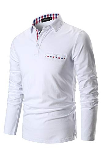 YCUEUST Uomo Cotone Lattice Polo Basic Golf Tennis Casual Reticolo T-Shirt Bianco Medium