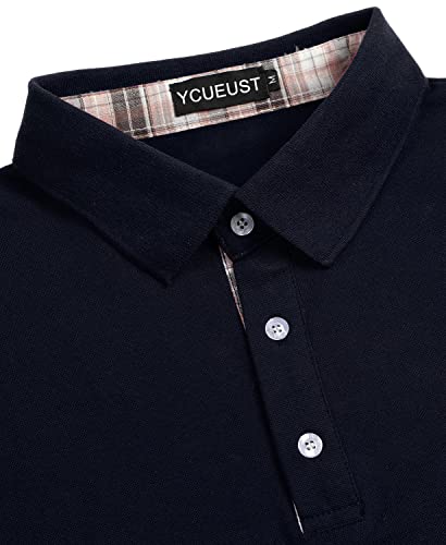 YCUEUST Cotton Polo Uomo Scacchi Marroni Manica Lunga Basic Golf Casual T-Shirt Blu XXL