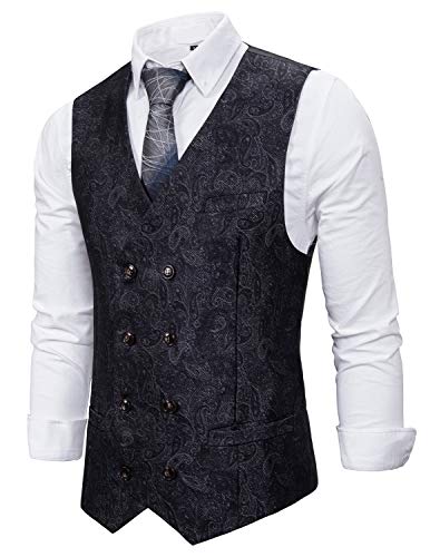 YCUEUST Uomo Floral Jacquard Gilet Classico Elegante Matrimonio Suit Vest Blu XXL
