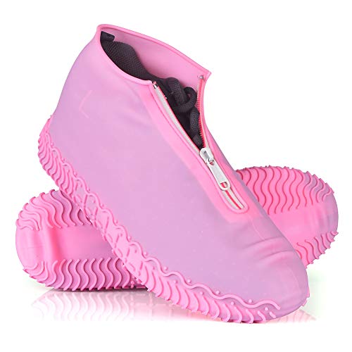 Ydfagak Impermeabile Copriscarpe, Copriscarpe Antiscivolo con Suola Antiscivolo Rinforzata, Copriscarpe Riutilizzabili Pieghevole per Le Giornate Di Pioggia e Neve (XL (43-47), Rosa)