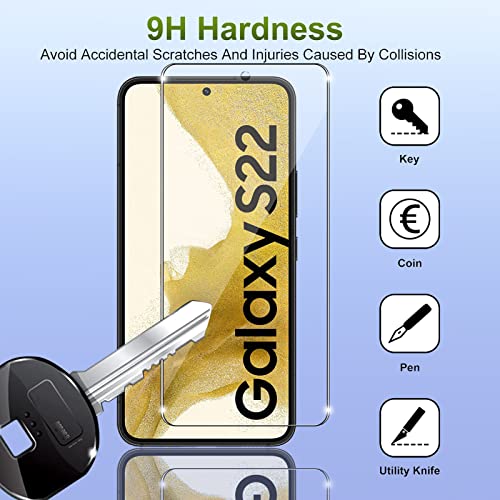 Livello di durezza 9H: la pellicola protettiva per Samsung Galaxy S22 5G è realizzata in vetro temperato di alta qualità, più resistente del vetro Oridinary con un livello di durezza 9H, resistente ai graffi e infrangibile, protegge lo schermo del telefono da urti e danni accidentali.