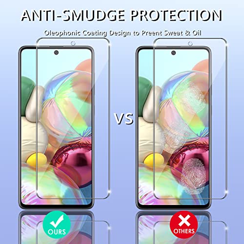 Livello di durezza 9H: la pellicola protettiva per Samsung Galaxy A71 è realizzata in vetro temperato di alta qualità, più resistente del vetro Oridinary con un livello di durezza 9H, resistente ai graffi e infrangibile, protegge lo schermo del telefono da urti e danni accidentali.