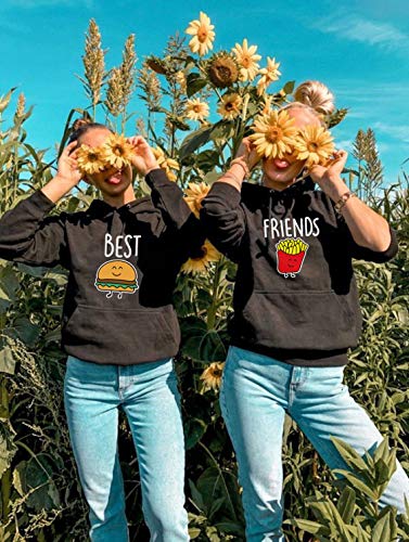 YDLIHUA Best Friends - Felpa con cappuccio, per due ragazze, con scritta in lingua inglese "Best Friends", Amburgo nero, XL