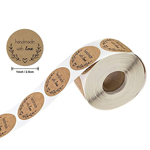 YdseozOA 1000pcs Self Adhesive Stickers Labels Kraft Paper Handmade with Love Round Baking Stickers Labels Roll Decoration Cookie Jars Homemade Gifts Envelopes, etc