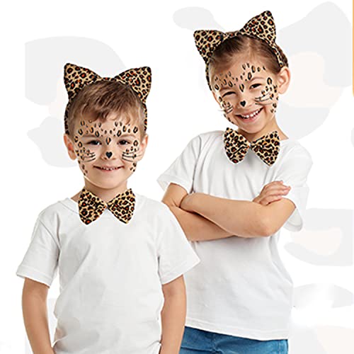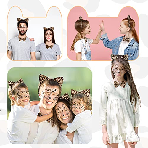 【Adorabile e accattivante】 Il papillon con fascia per capelli con orecchie di gatto, il braccialetto leopardato e gli adesivi per tatuaggi presentano il simpatico motivo leopardato e gli adesivi per il trucco sono progettati con glitter dorati, rendendo il tuo aspetto generale più armonioso e attraente e diventi il fulcro della festa.