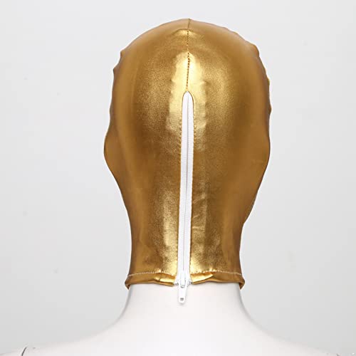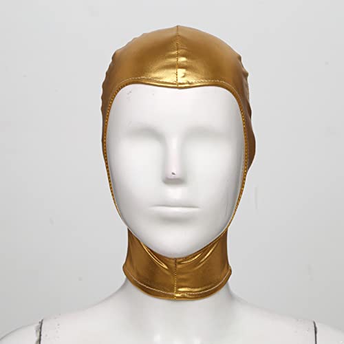 YEAHDOR Maschera in Lattice Uomo Cappuccio Elastico Full Over Halloween Maschera Copriviso Passamontagna Matellico Copricapo Parrucca Moto Zentai Oro S Taglia unica