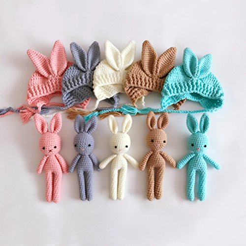 Yeahibaby - Pupazzo e berretto a forma di coniglio, per neonati, all'uncinetto, in maglia, colore grigio 25 x 8 x 8 cm caffè