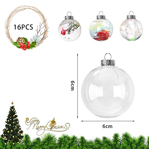 YEAPEAK 16PCS Palline decorative in plastica, Natale Palline Albero, Palle di Natale Trasparenti,Palline riempibili in acrilico, palle di natale trasparenti, per decorare per l'albero di Natale