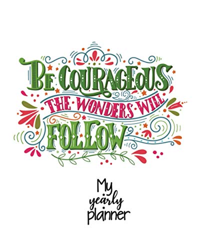 My Yearly Planner: Daily, Weekly, Monthly Undated Planner & Notebook - Appointment Journal Notebook and Action day - Be courageous, the wonders will ... vintage illustration with hand-lettering.