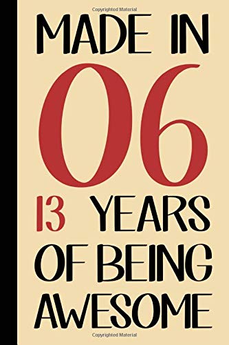 Made In 06, 13 Years Of Being Awesome: Happy Birthday Blank Lined Journal Book, Birthday Gift For 13 Year Old Boys & Girls (13th Birthday Gift | 13 Year Old Journal)