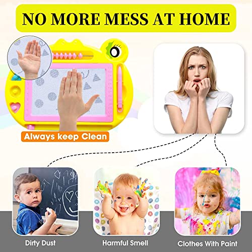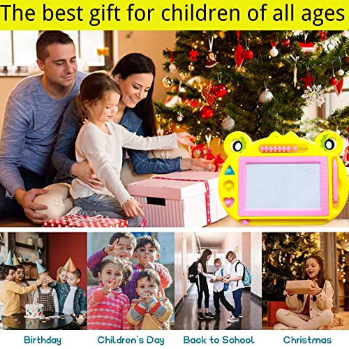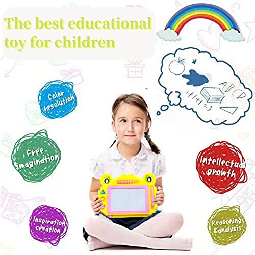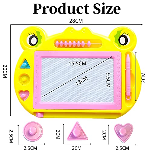 【Magnetic Drawing Board】Il design della rana può attirare l'interesse dei bambini. Dimensioni della superficie di disegno: 15,5 x 9,5 cm, dimensioni del telaio: 28 x 20cm, dotato di 3 francobolli,8 perline di calcolo e 1 penna, Adorabili mini dimensioni timbri geometrici sono grandi per piccole mani. Piccoli e facili da trasportare, quindi questi mini giocattoli per bambini sono la dimensione ideale rendere la creatività e l'immaginazione del bambino per migliorare.