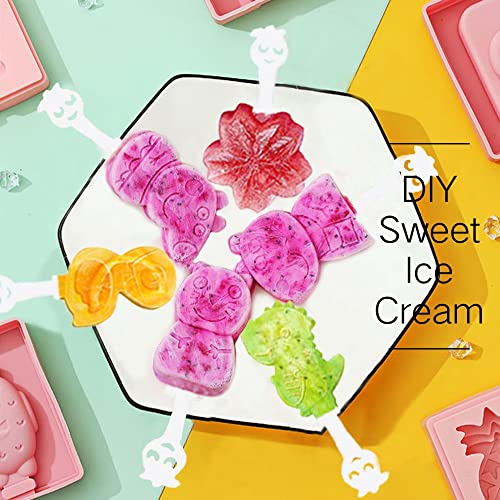【Set di stampi per gelato rosa】 Riceverai 2 stampi per gelato con coperchi con 6 cavità e 6 bastoncini. Ogni cavità ha uno schema diverso, inclusi gatto, maiale, dinosauri, fiori, uccelli. La dimensione di ogni stampo per ghiacciolo è 18,5 x 10 x 2,5 cm/7,28*3,93*0,98 pollici. Il peso è di 200 grammi. Leggero e non occupa spazio. perfetto per qualsiasi tipo di frigorifero. Con esso, puoi preparare deliziosi e belli ghiaccioli in sei diverse forme contemporaneamente.