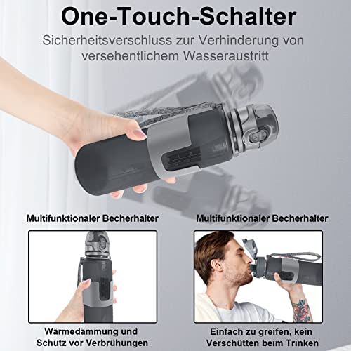 【Migliore esperienza di bere】 La migliore esperienza per lo sport - Coperchio preventivo one-touch con un coperchio di blocco di sicurezza protettivo per prevenire l'apertura accidentale e riporre lo zaino per una maggiore tranquillità. Questa bottiglia salvaspazio è dotata di un manicotto per tazza, realizzato in plastica dura PP di alta qualità, antiscottatura e antiurto, e il manicotto per tazza ti consente di versare l'acqua il meno possibile e bere con maggiore stabilità.