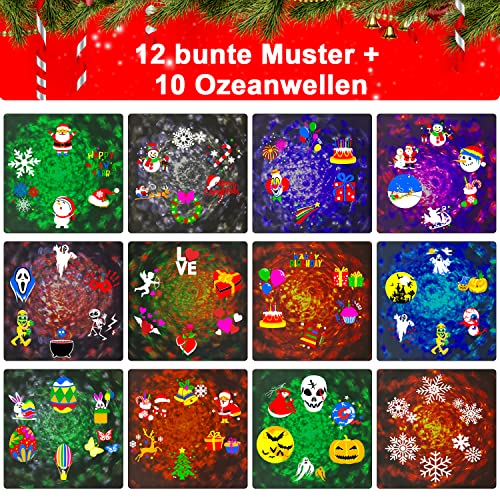 Luci del proiettore di Natale aggiornate - Le luci di proiezione di Natale sono dotate di 12 diapositive uniche, ciascuna con 6 motivi anziché solo 4 come la vecchia versione. Ciò che è ancora più sorprendente è che il numero di modelli non è fisso ma facoltativo quando proiettato. Per evitare di farti sentire monotono, questa luce del proiettore può anche essere impostata con 10 diversi sfondi di onde oceaniche.