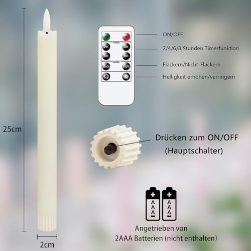 Yeelida candele led con telecomando e temporizzazione, 25cm avorio 6pcs fiamma tremolante candele led, vera cera a batteria candele elettriche finestra, lunga durata 400 + ore