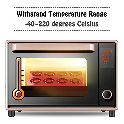 【Confezione e Dimensioni】 Stampi in silicone per ciambelle a 8 cavità da 2 pezzi. 29,7 * 17,4 * 2,2 cm. Diametro del foro singolo: 6,5 cm.