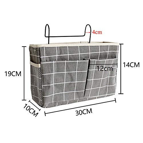 Specifica - Materiale: tela e gancio in ferro. Dimensioni: 30 * 10 * 19 cm. Tasca a rete laterale Dimensioni: 12 * 14 cm. Soluzione favolosa per mancanza di comodino. Si prega di confermare le dimensioni prima di acquistare.