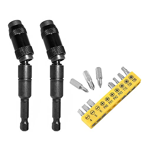 YeenGreen 2 Pezzi Punta Magnetica Orientabile a 20°, Porta-punte Magnetico Girevole 1/4", Portainserti Magnetico per Cacciavite per Spazi Ristretti Angoli con 10 Pezzi Punte