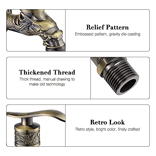 Ottone Di Alta Qualità: lantico rubinetto intagliato a forma di drago realizzato in solido corpo in ottone massiccio e lega di zinco, durevole, resistente alla corrosione e allossidazione.
