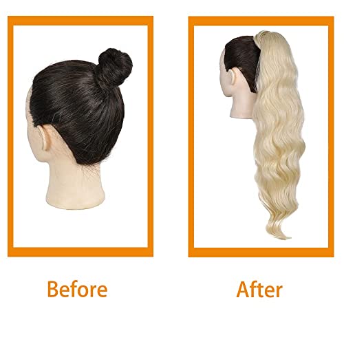 Coda di cavallo ondulata lunga riccia: colore biondo naturale come i capelli umani, estensione lunga coda di cavallo ondulata cambia per un nuovo look glamour. Aggiungi lunghezza ai tuoi capelli naturali!
